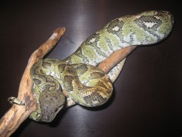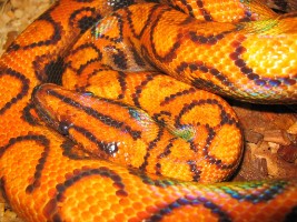 Mit den Cenchrias hat es 1997 endlich angefangen. Leider ist mir eine von den zwei Schlangen relativ schnell eingegangen. Aber die andere hat sich bis heute gehalten - Elvis! Elvis ist zwar ein Weibchen, aber egal und mittlerweile ca. zwei Meter lang. Elvis war schon zweimal Mama und hat immer sehr schöne Junge bekommen, die es einem teilweise sehr schwer machen sich von Ihnen zu trennen. Elvis lebt zur Zeit noch mit zwei weiteren Cenchrias-Damen und einem Cenchria-Pascha (Männchen) in glücklicher Polygamie zusammen.